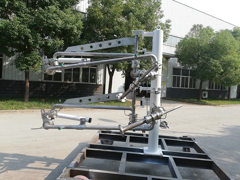 LNG鹤管、低温装车臂由立柱、液相臂、气体回收臂、平衡装置、氮气吹扫装置、导静电装置、旋转接头以及紧急切断阀等机构组成。