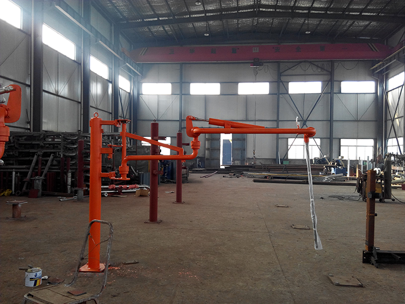 流体装卸臂又称鹤管,由转动灵活,密封性好的旋转接头与钢性弯头及管道连接起来,用于装卸栈桥储运管线与公路、铁路槽车之间液体或气体产品传输的专用设备。